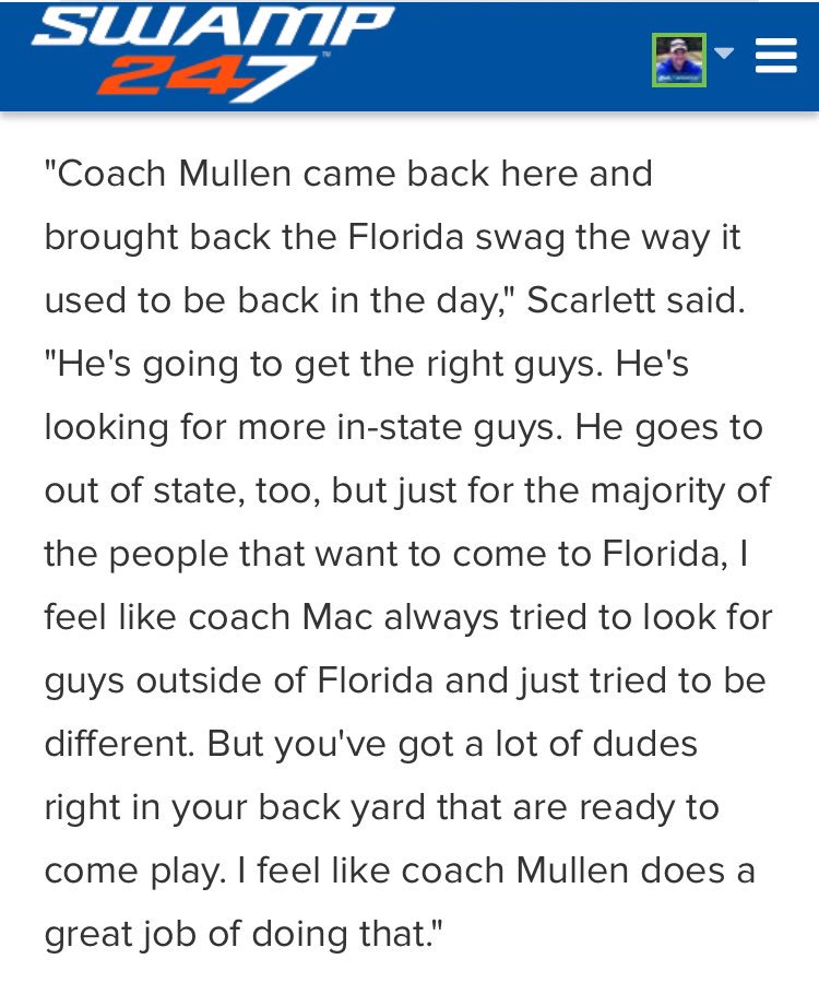 I think there is clearly a subset of Florida fans that expect Mullen to land #1-#3 recruiting classes every year just like Meyer did, and that shite just is not going to happen.