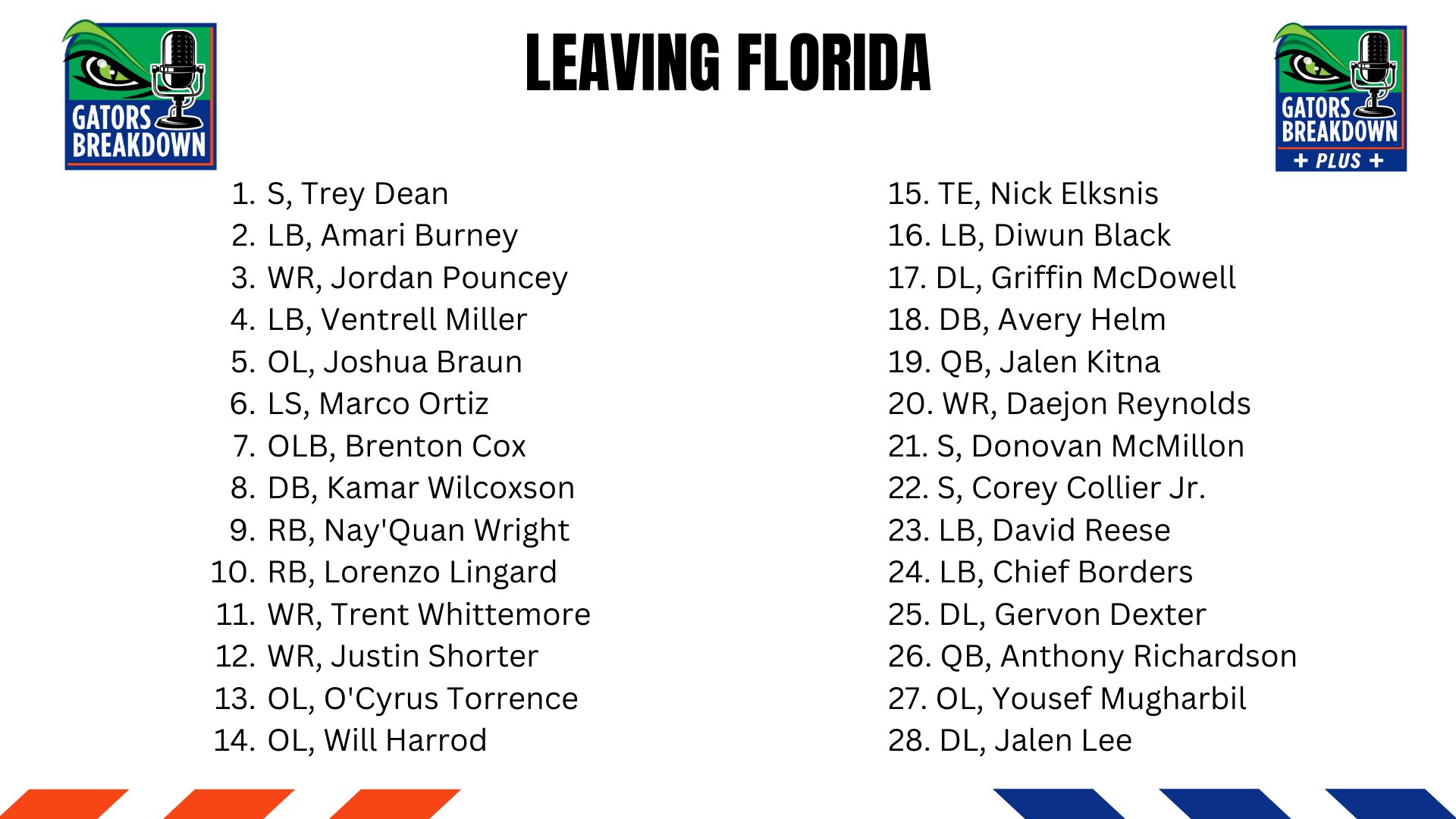 We’re losing 30 players to draft or transfer portal or dismissal.