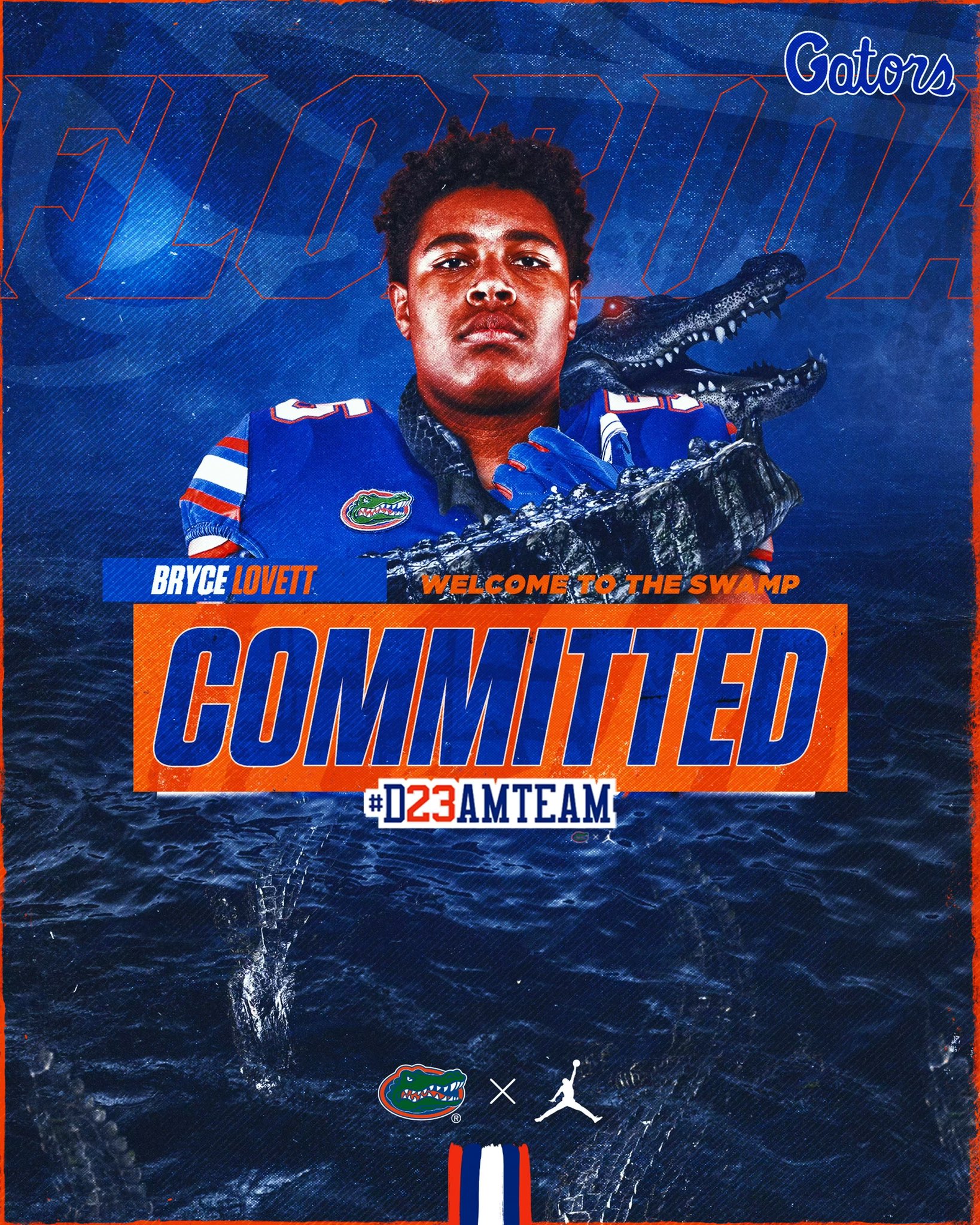 Lovett is Florida’s fifth 2023 commitment, joining four-star athlete Aaron Gates, four-star offensive lineman Knijeah Harris, three-star athlete Creed Whittemore and three-star wide receiver Tyree Patterson. The Gators rank No. 30 in the country in 2023 recruiting, surpassing Miami.