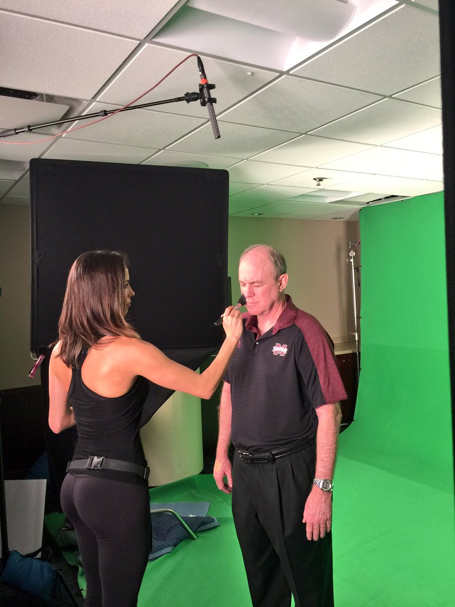 Woman putting makeup on Ben Howland