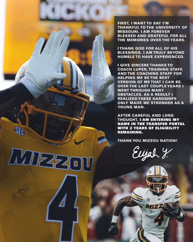 Luper is the running back coach. I get it he wants more playing time. How the heck can each one gets all the playing time? It isn't easy to share the reps when you try to get one to do it all. Look at the top teams in the SEC all loaded with 4* and 5* talents. Not all had their turn to play on the field. How is Missouri any different? Drinkwitz is going to have to recruit much better players and find the ones to get it done on the field. Plus, some of the players rather play for teams that are loaded with talents. No hard to see that. Transfer portal and NIL are hurting lesser teams. That is the truth.