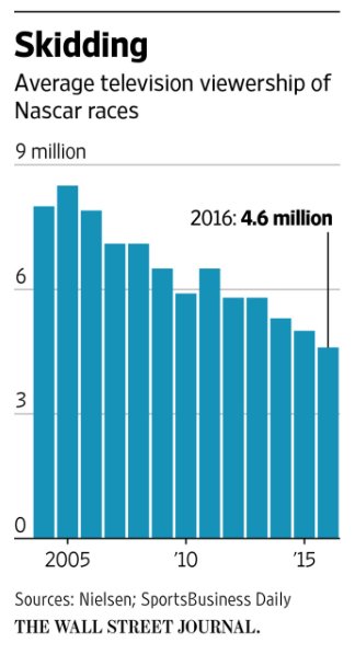 The heartbeat of Nascar was in the Carolinas and look at it now: no North Wilkesboro, no Rockingham and they screwed with Darlington for a time. Then you have the France family basically trying to disavow the very people who made their sport popular by banning Confederate regalia. And now your drivers are a bunch of Yankees with zero personality whatsoever. No wonder Southerners have turned it off.