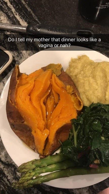 sweet potatoes baked with some butter until soft, scooped out of the peel, and then mixed with a little brown sugar (not much) and some cream cheese