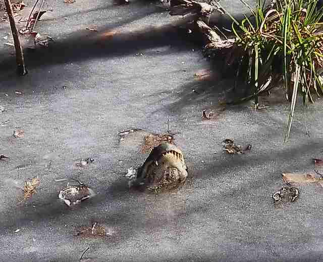Way back when there used to be a healthy population of alligators as far north as Chesapeake Bay. Yes, before any humans got here but they were there. We know they can survive being frozen over winter. They have may have been active even further up the coastline.