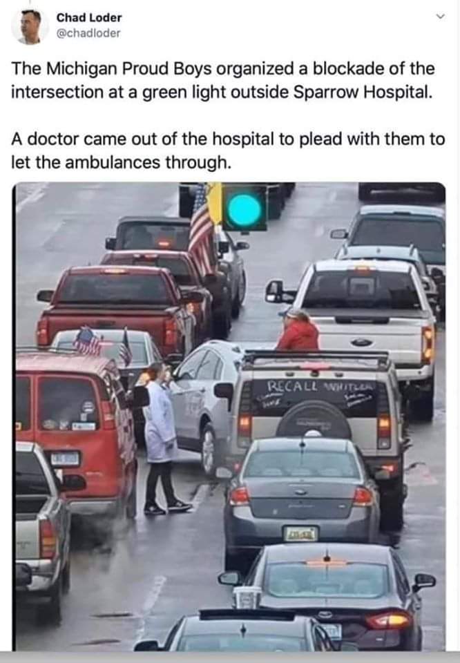 That's how you can tell the hospitals are overwhelmed. The fricking healthcare workers have time to counter protest in support of an authoritarian state government.