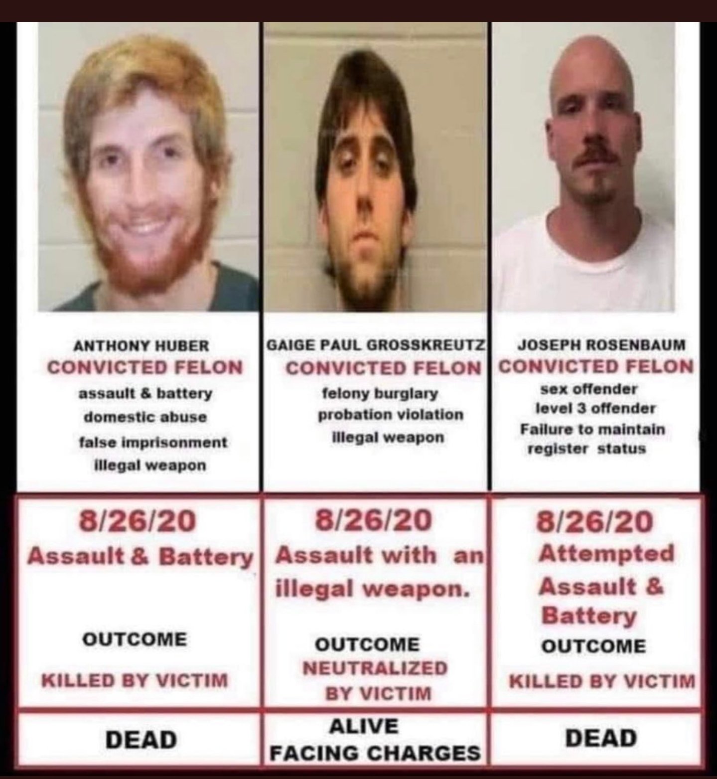 Imagine that. He fired three rounds at BLM/Antifa "protesters" and hit three felons, including a sex offender.
