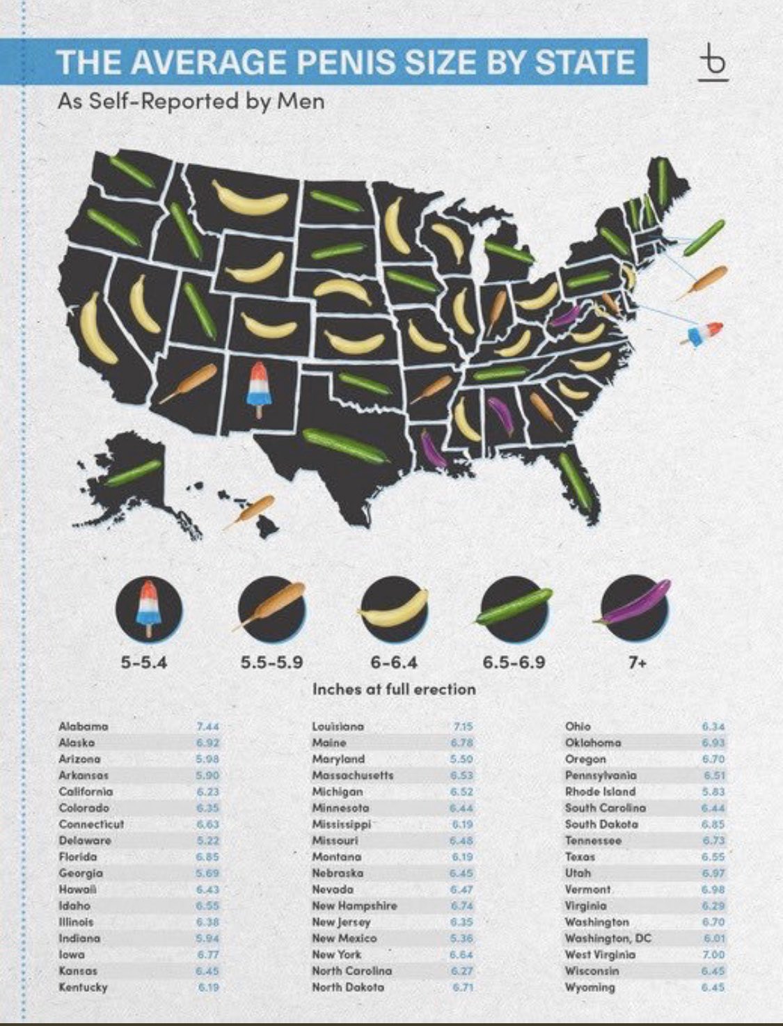 Self reported...so remove an inch of each state at least