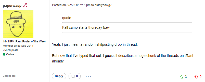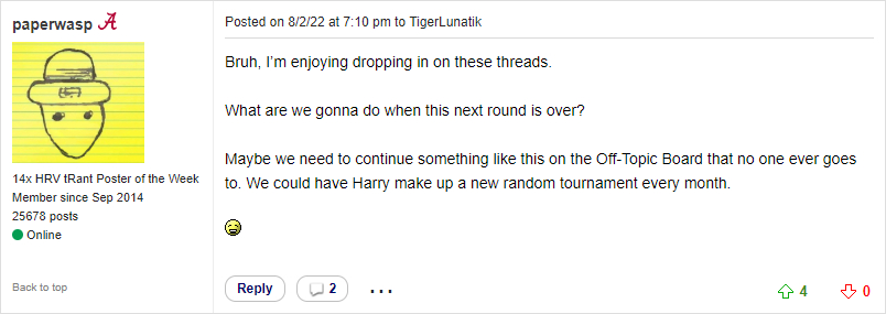 the reasons some of us do so much shitposting over here is because of how fun those and the now defunct best/worst poster threads were.
