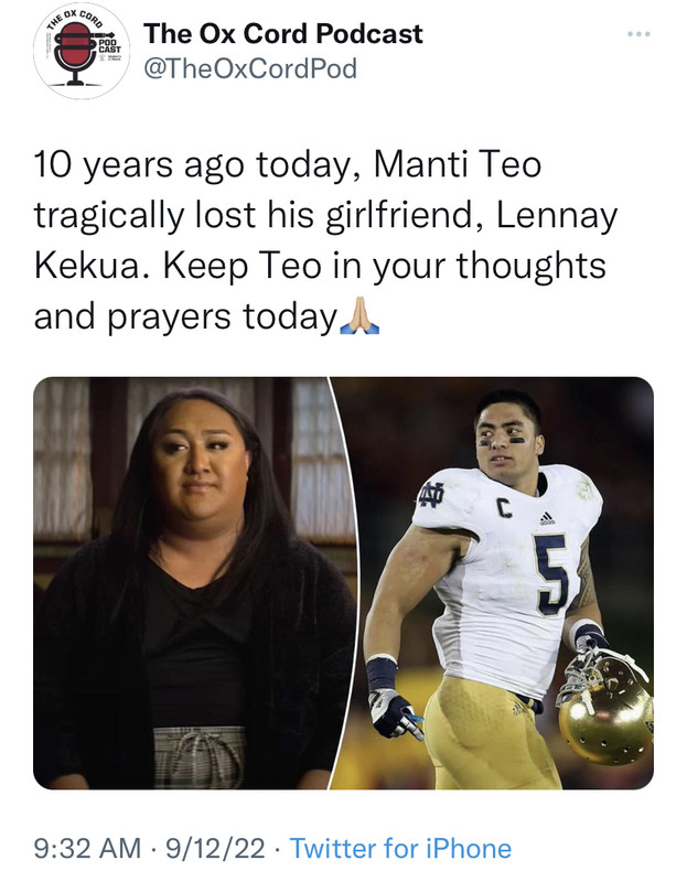 re: Y'all remember Manti Te'o? He's getting his own documentary on Netflix about his fake GF
