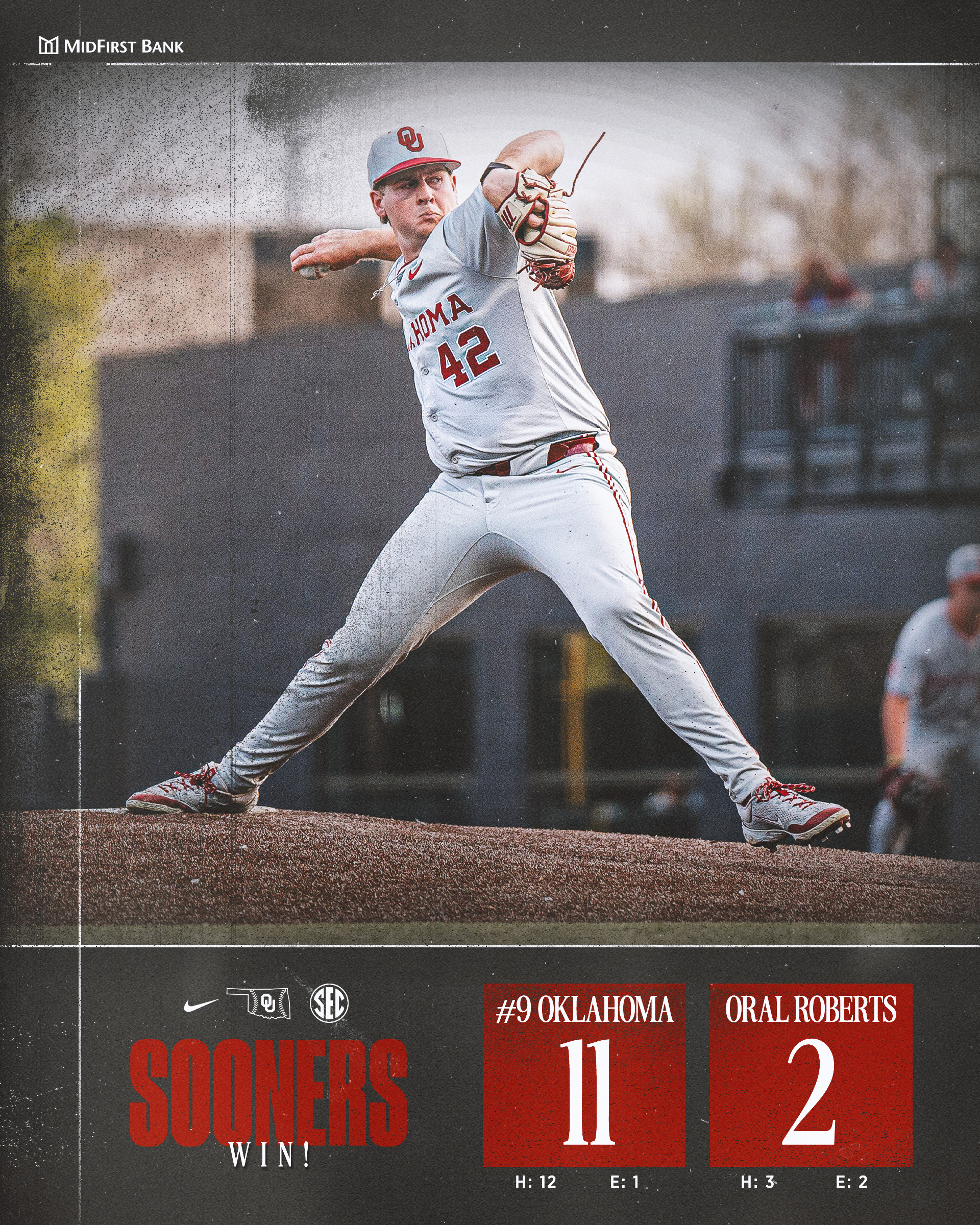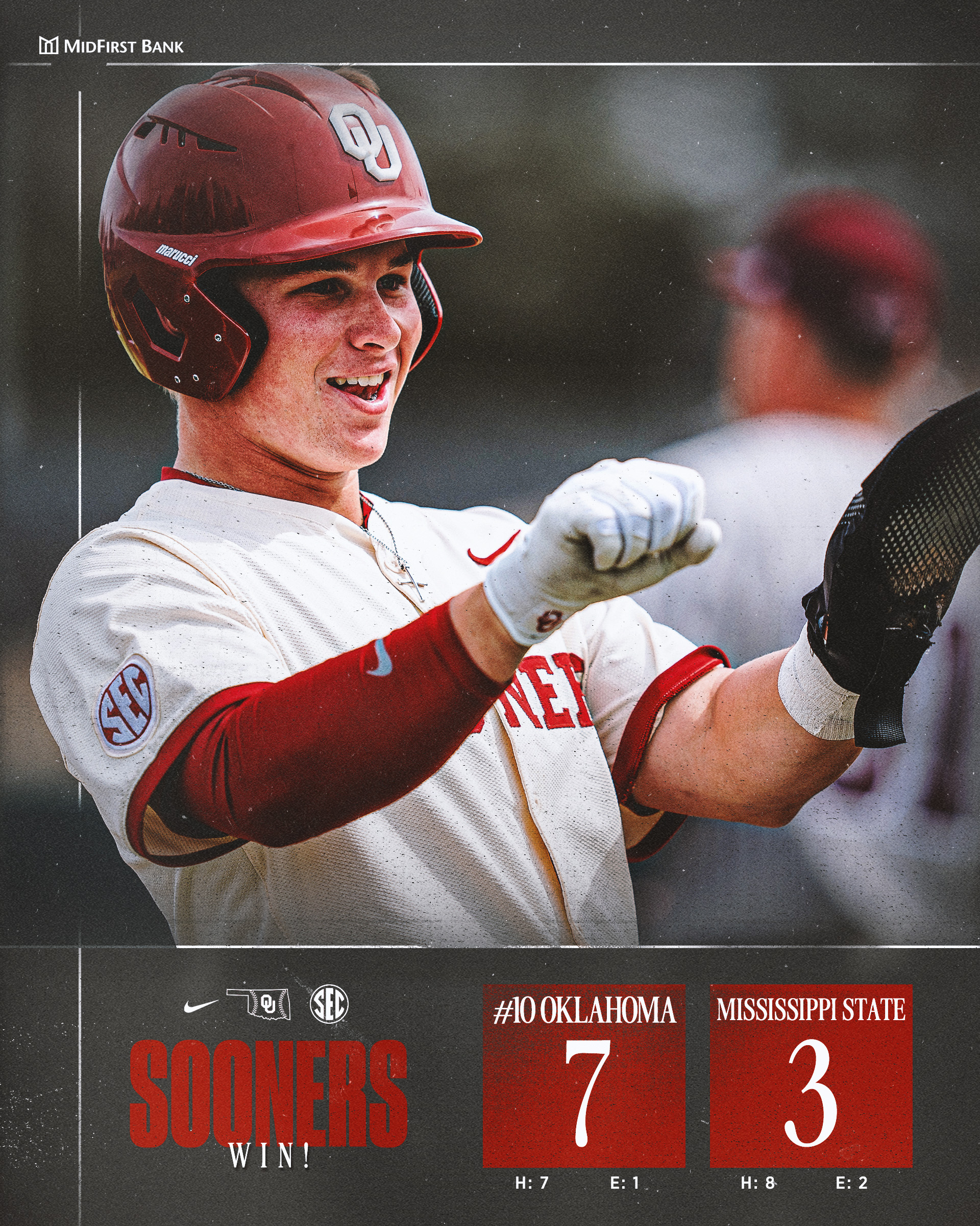 OU wins game 6-5 and series 2-1. On the road too! Great start to SEC play!