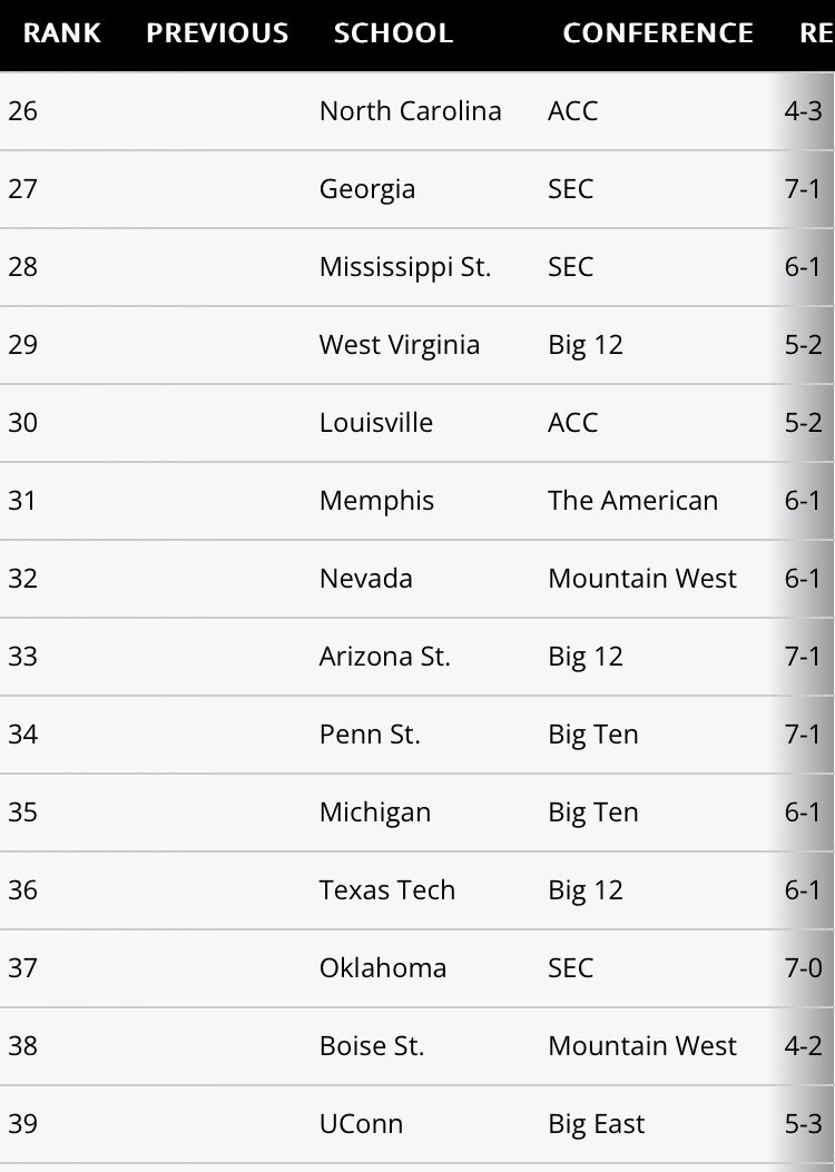 OU ranked 21st. 8 SEC teams ranked