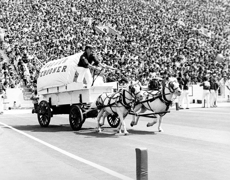 Over in the student union there’s one of the old sooner schooners you crawl down underneath it. It says Miami sucks on the bottom of it.