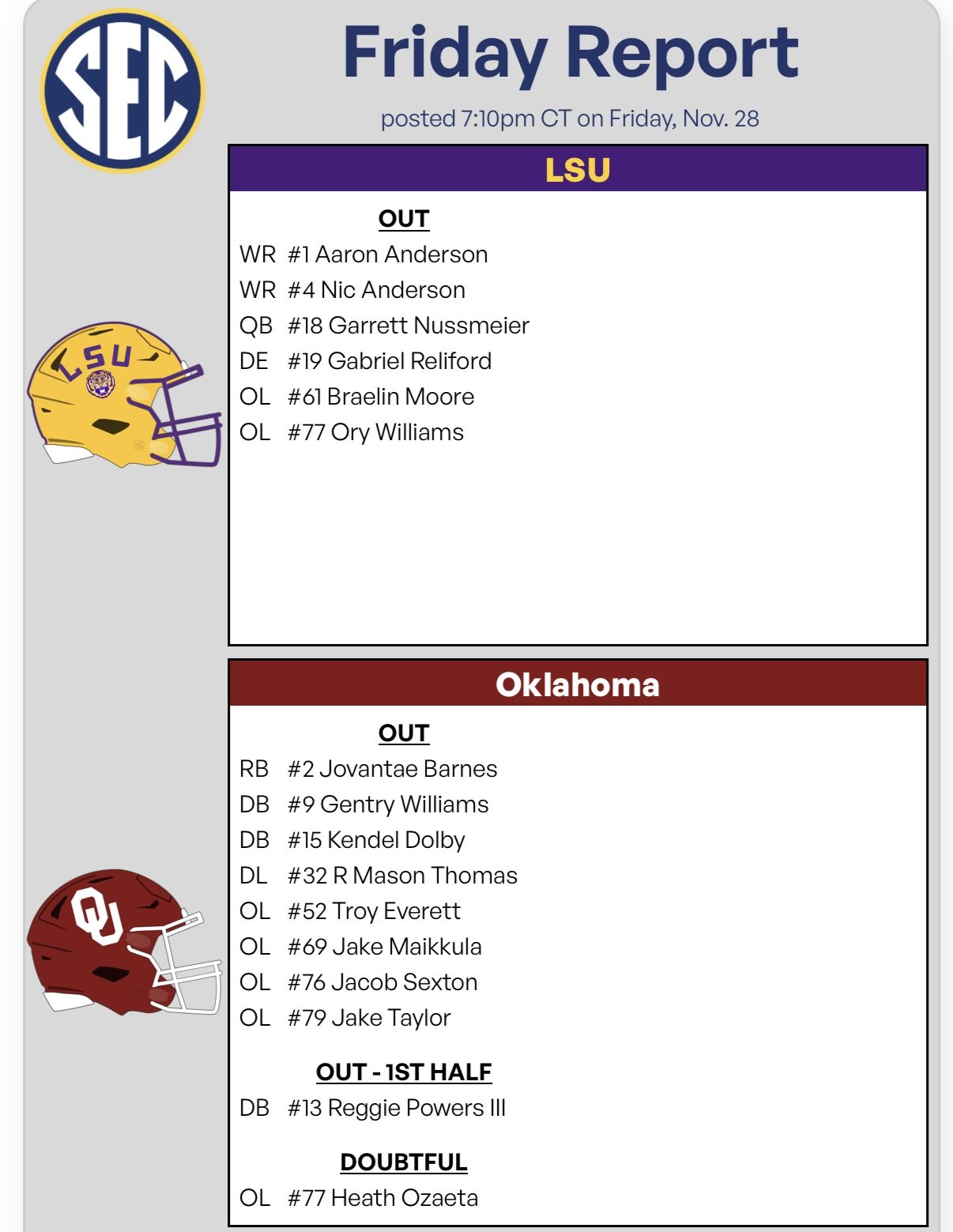 re: OU vs LSU / Sat, 29 Nov / 2:30pm TV ABC