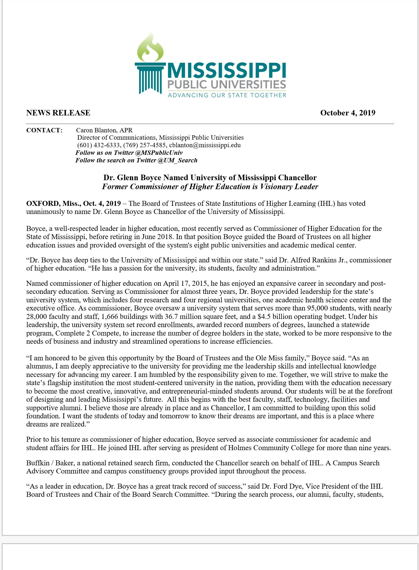 re: BREAKING: Ole Miss New Chancellor Announcement LIVE