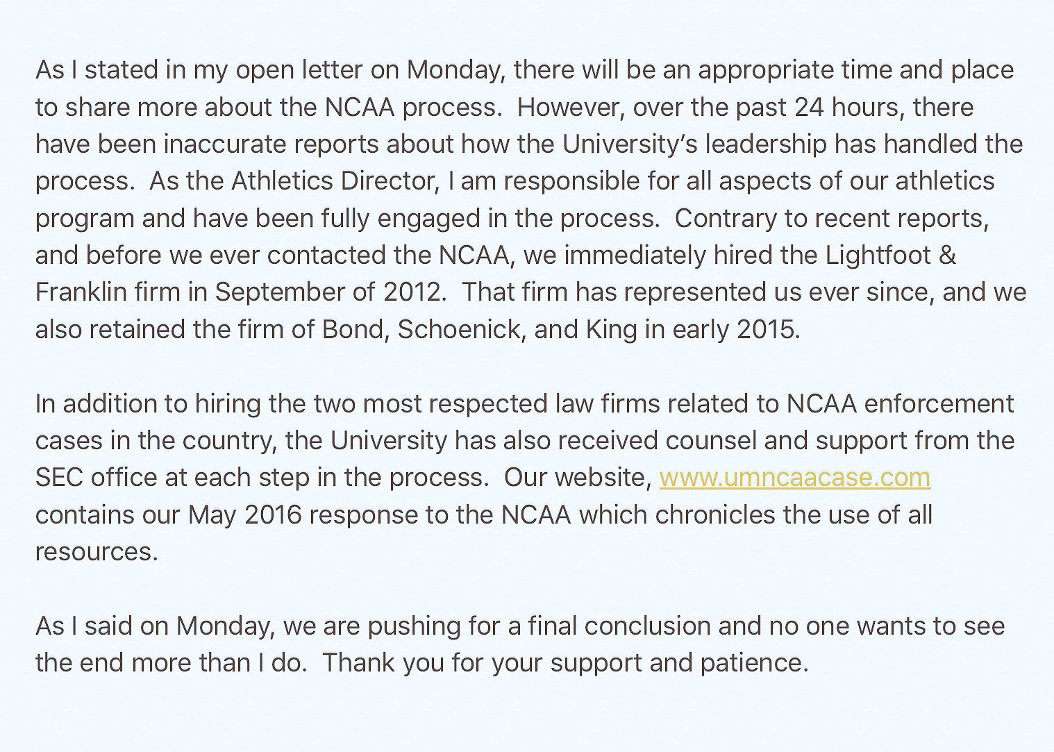 It's painfully obvious that we have people (not a person, people) within our athletic department that are using this investigation as a spring board to getting an NCAA office with a view.
