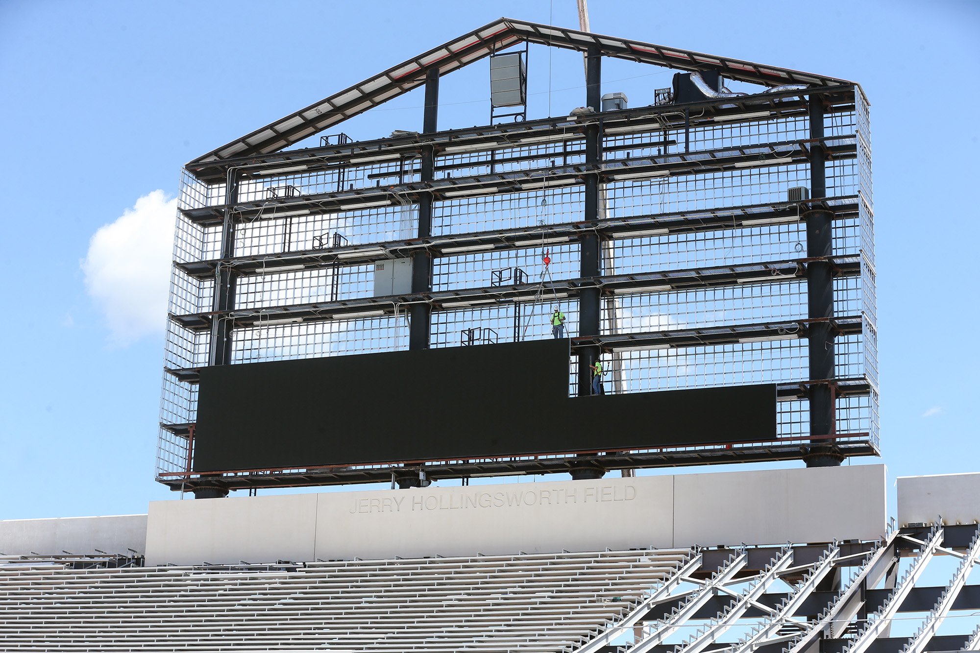 What's going on to the right of the video board? Looks like two poles are going up on the top of the stands area.