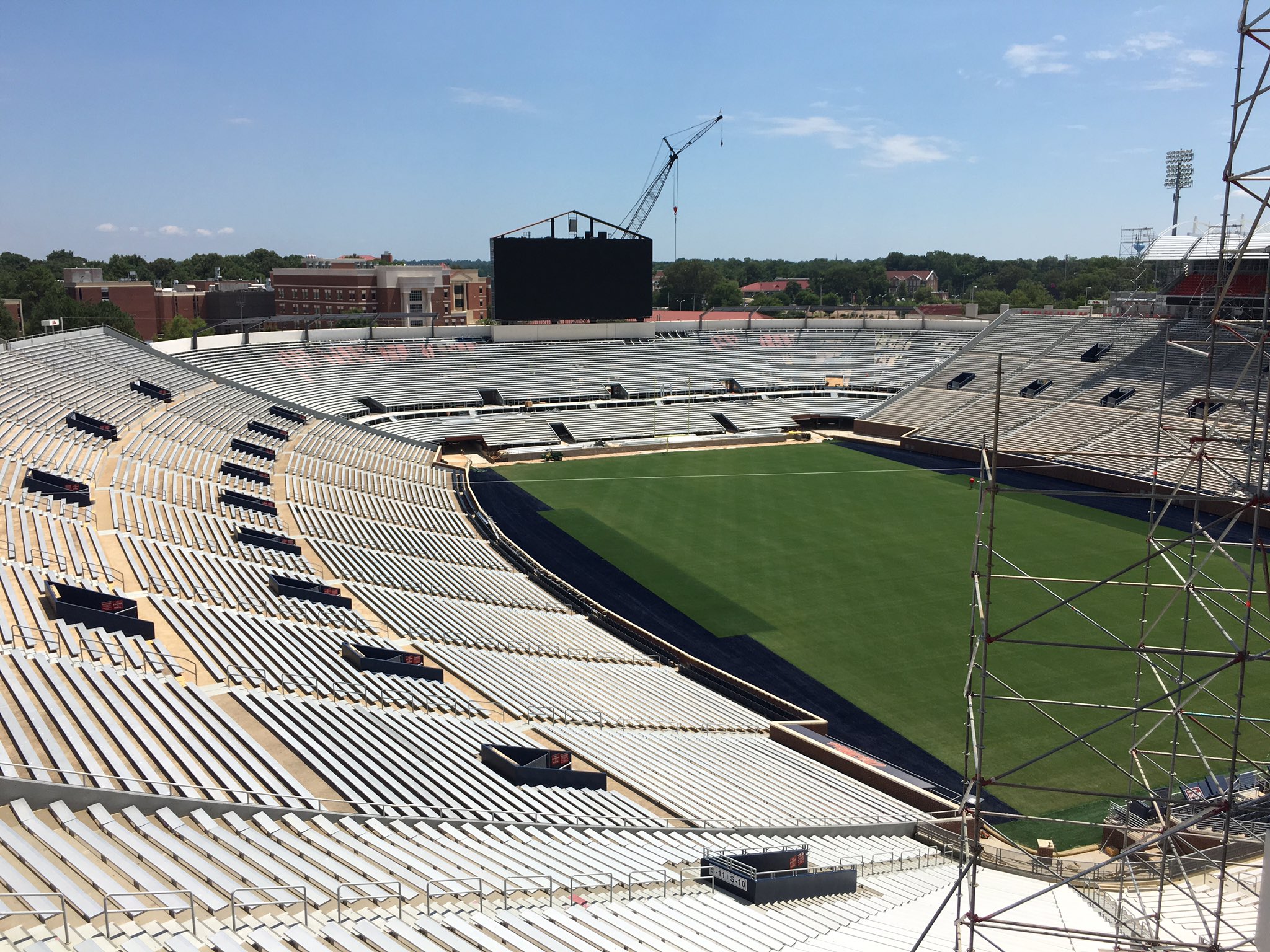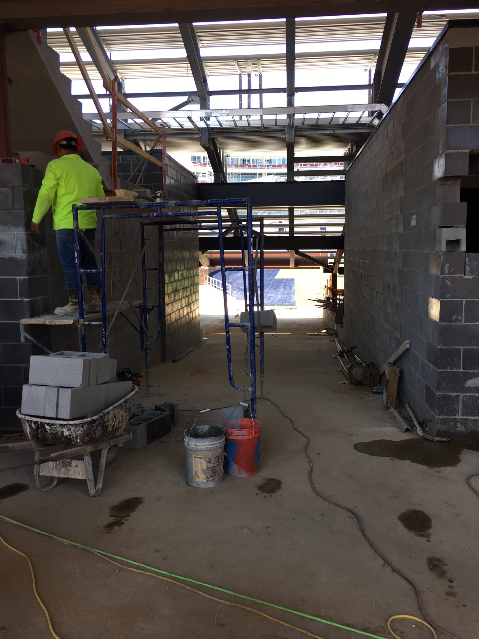 I just want them to get those damn power lines down. Drove by the stadium Monday. The stadium looks larger with the end zone enclosed.