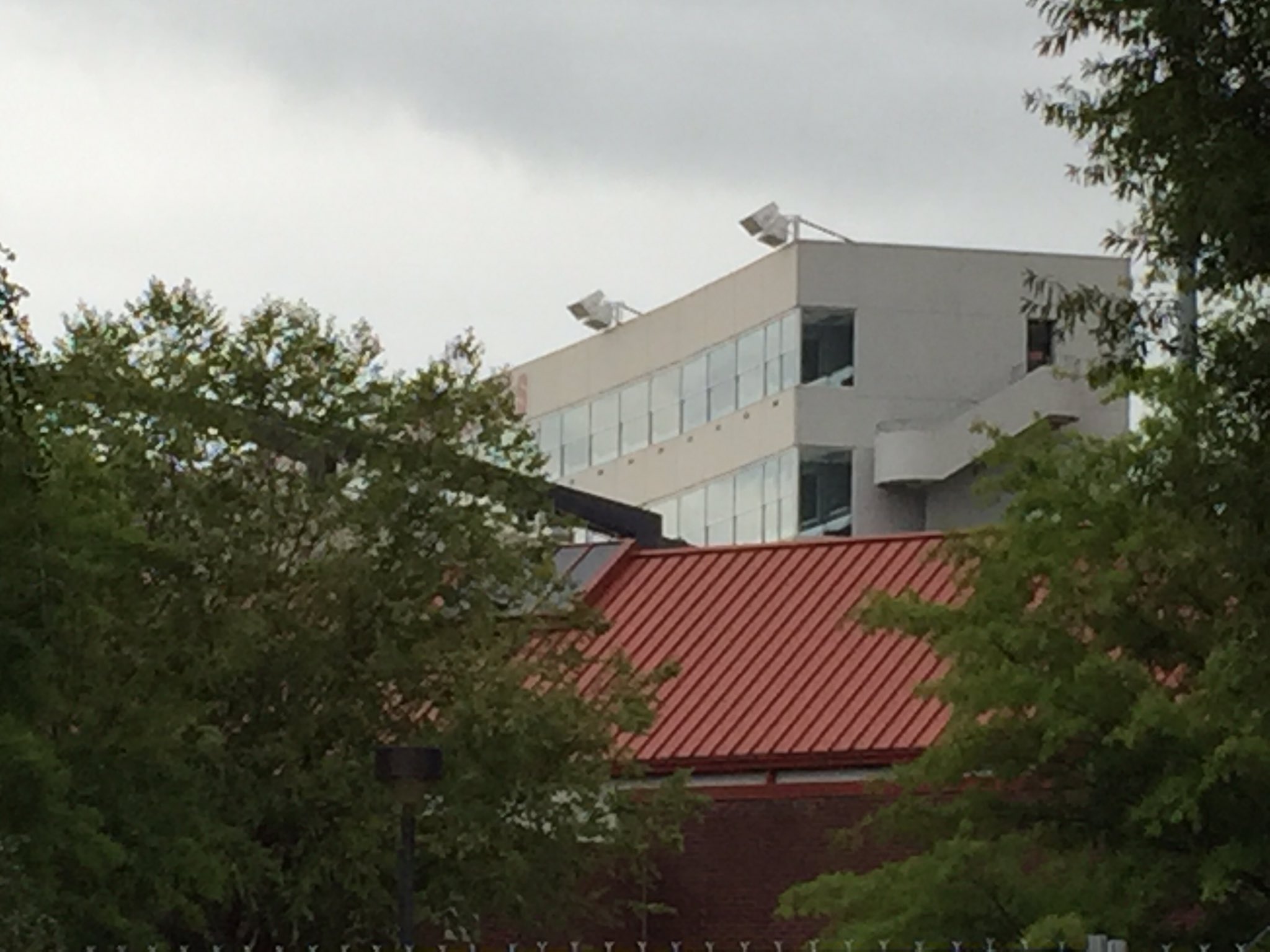 I guess the speakers on the top of the press box? Surely those aren't lights...