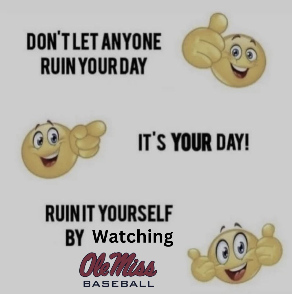 I honestly think we might win 3 or 4 more SEC games. I think we get swept by Arkansas next weekend and then State will come to town and demolish our pitching and sweep us.