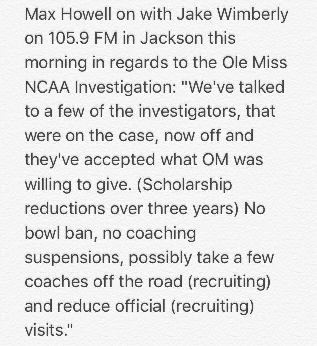 Max Howell spoke to @Jakewim this morning on Out of Bounds, 105.9 FM in Jackson, about the Ole Miss investigation.