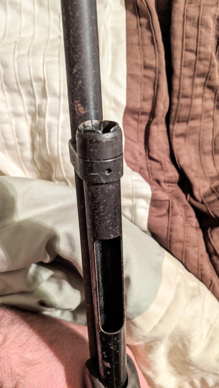 I don't have any shells for it yet, but I'm trying to figure out how to feed the shells into it. The end of the tube is open and there is a hole underneath the tube, so I'm assuming there is a piece missing. Can anyone tell me a little about the gun, approximate age, if it looks like something is missing? Thanks