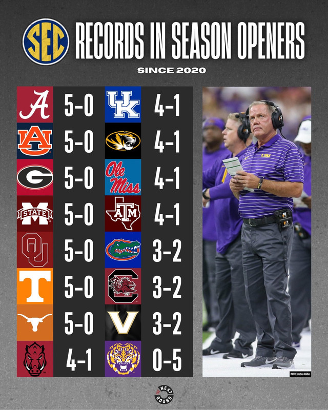 Another thing I think is crazy is that no other SEC team even has a losing record in openers.