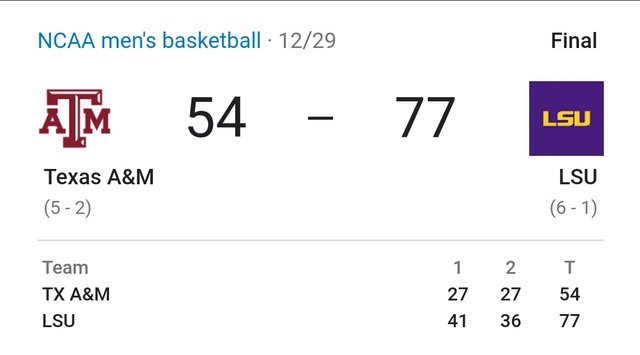 re: #18 Alabama 105 @ LSU 75 FINAL - ESPN2 Thank goodness.