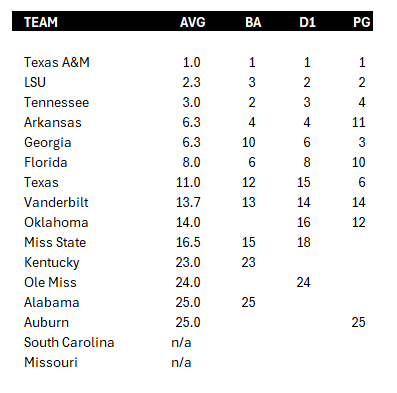 Even using PG, OU is 12th. And that is good for only 8th in SEC. Damn, the playoffs will be conf games each week. Those will be some legit great games!