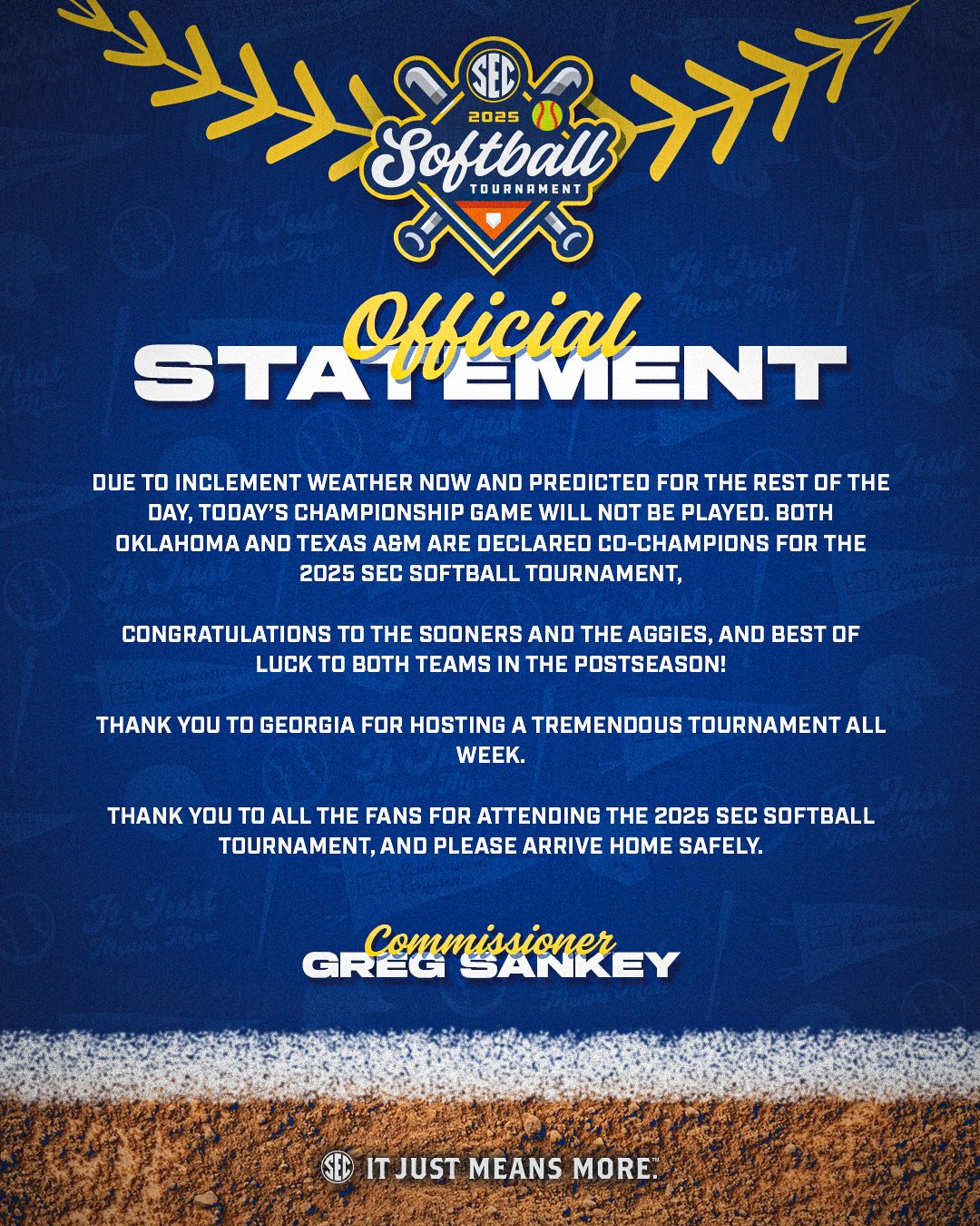 Well OU, see ya in the postseason. Sucks the Commish went woke.