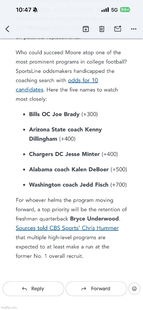 Why would anyone want Underwood at this point? Will cost a fortune in NIL and the kid just isnt a good QB.