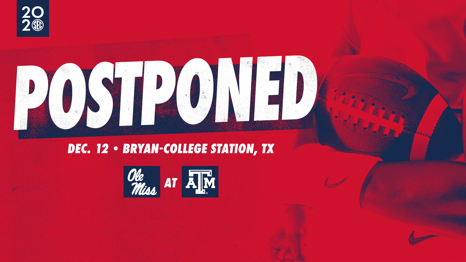 Saturday's game at Texas A&M has been postponed. In addition, Ole Miss' suspension of team activities has been extended until at least Friday.