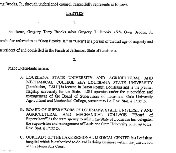 re: ABC News - Greg Brooks Jr. speaks out about lawsuit vs LSU, recovery from brain surgery