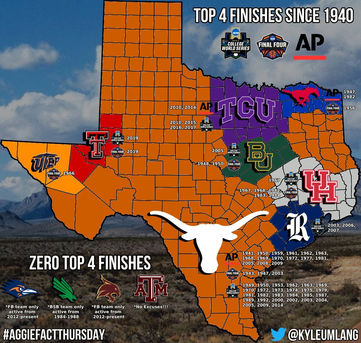 Speaking of powerhouses, sure seems like every single school in the state of Texas has a better right to claim that than our favorite cult in college station: