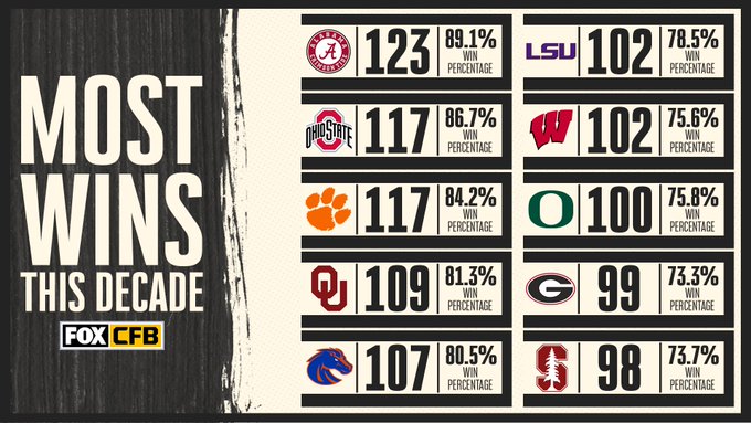 Alabama 1st All Time in Winning % and 2nd in all-time wins at 944 wins.