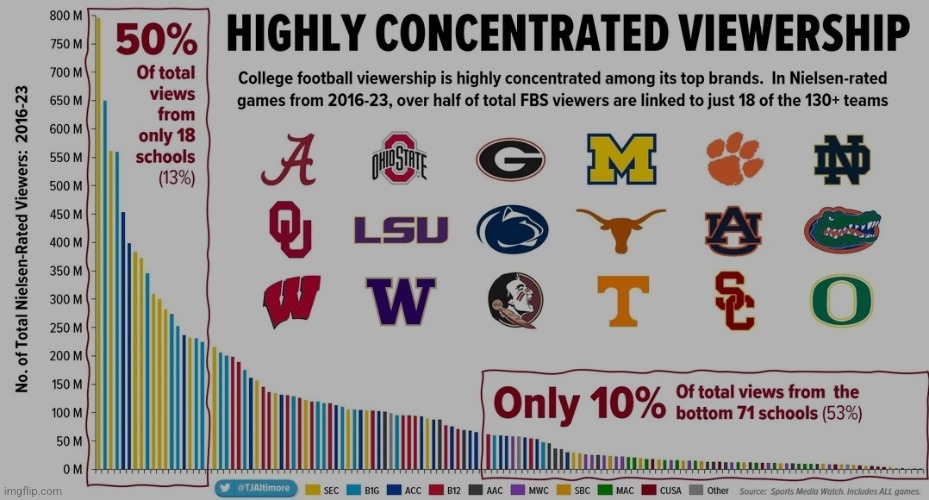 Coming into the season, all expected the 5 vs 12 to be the most certain outcome. Now, they have a potential blueblood in Bama who has led or been among the top of Nielsen ratings year after year for the most watched team. And, the storyline of CKD breaking out of CNS's shadow or being buried in it sells well.