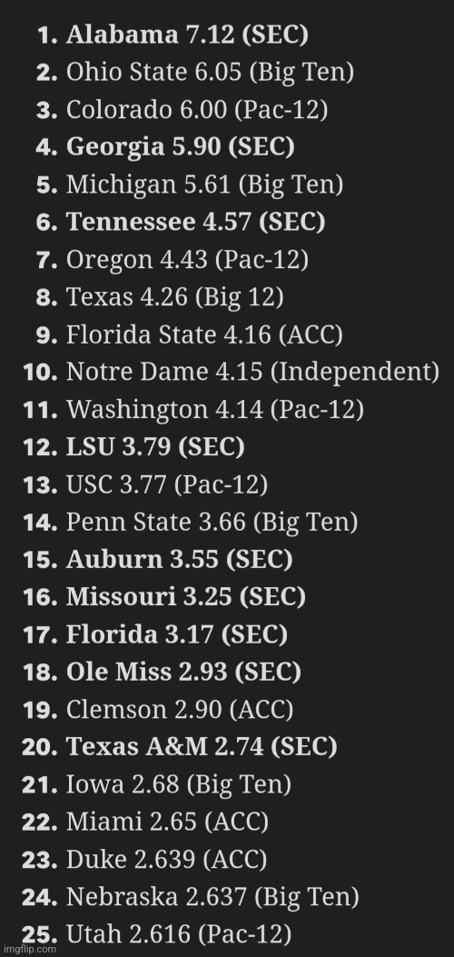 I'm not saying it's fair, but if the committee considers all things relatively equal, Bama is in as it enhances the Rd 1 game for $$$. Those who like classic team matchups: Bama vs ND or OSU or PSU will tune into watch. Those who are pissed and want to watch another 2024 Bama Meltdown will also watch to see the Tide get their potential comeuppance, and arm themselves with I told you so's and gifs