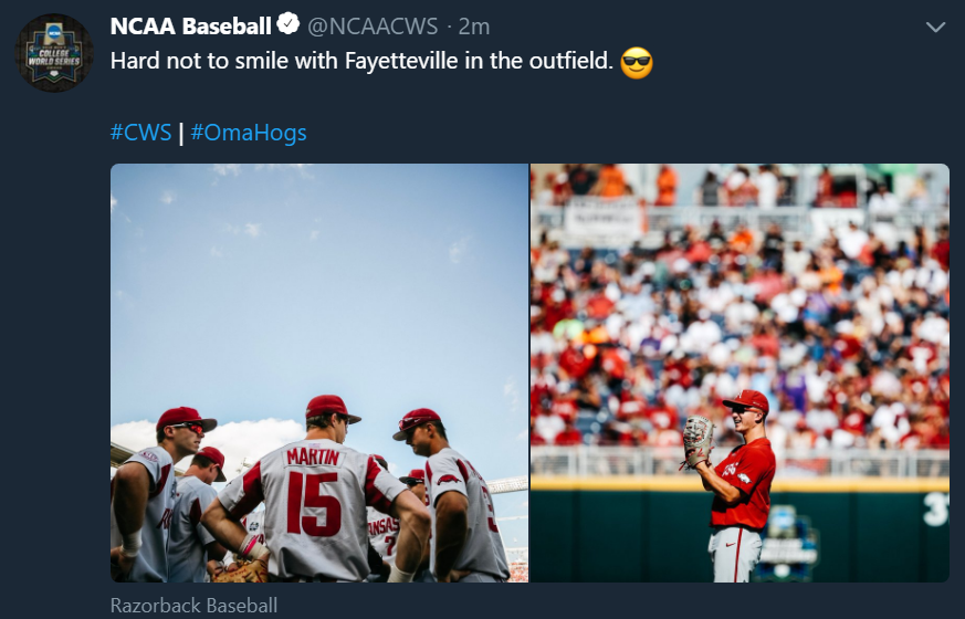 Have a few college friends there with all of their sons. Looks like we will have a very loud and proud Calling Of The Hogs on TV tonight.