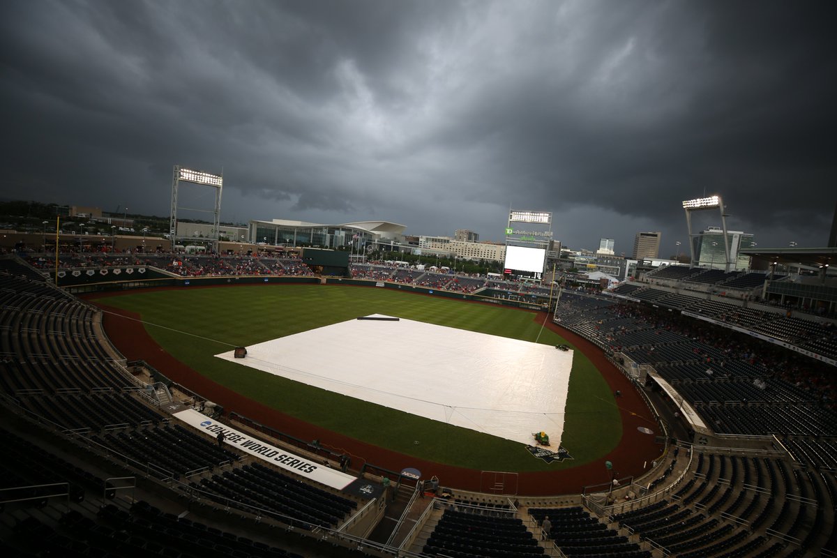 Due to severe weather in the area, CWS Finals Game 1 between Arkansas and Oregon State has been postponed to Tuesday, June 26 at 6 p.m. CT. Gates will open at 4 p.m.