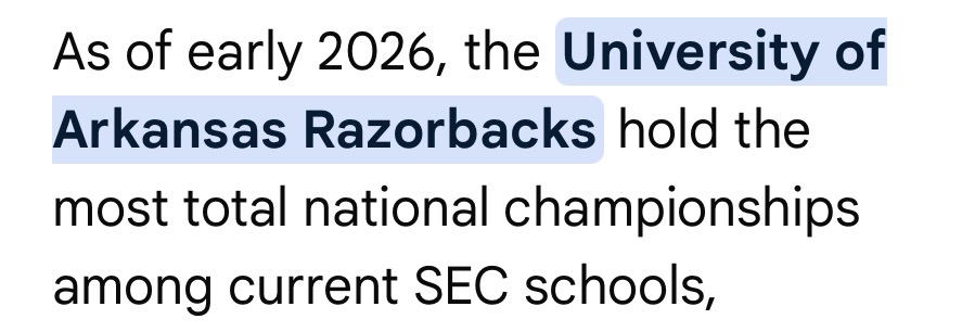 We built most of that under Coach Mac. We're still strong in T&F, but we'll likely be caught by LSU or Florida at some point. Texas is technically ahead already, although most of their titles were won in the SWC.