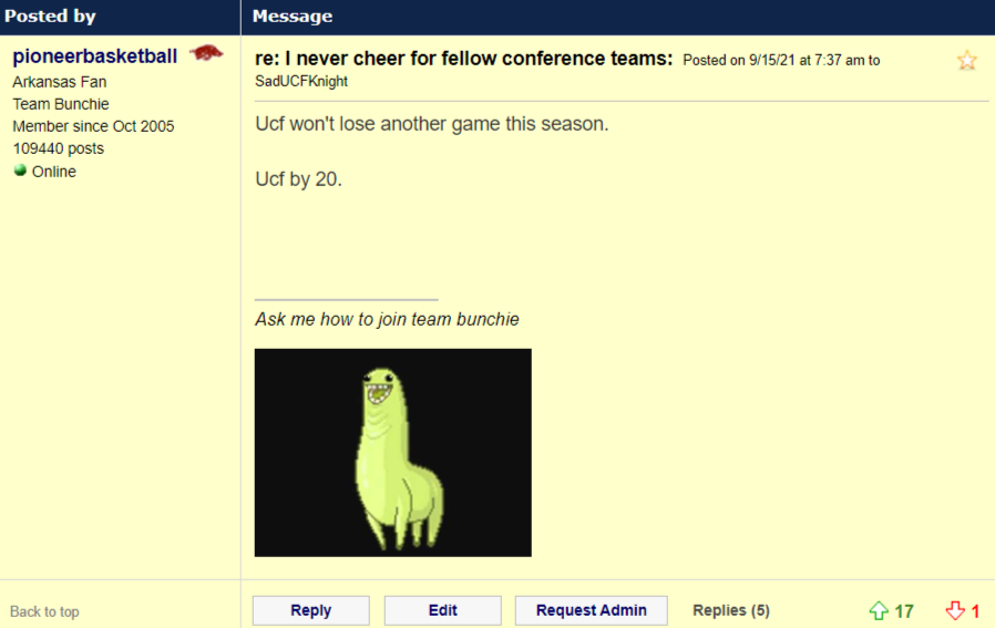 quote:But I bet he could write and record a real catchy rap song about one of the UCF pre-game traditions.