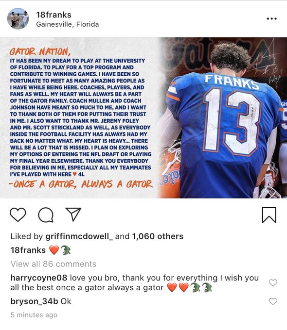 Franks says goodbye to UF