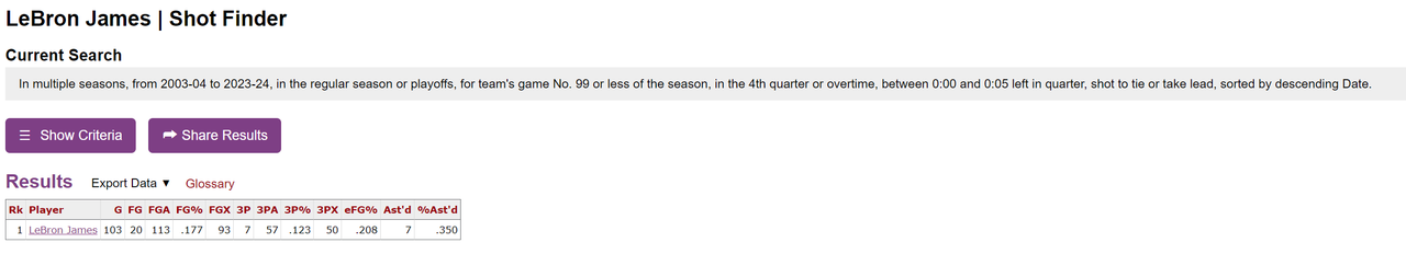 He has the most playoff game winners in NBA history. I’d ask you for a source on that 20% mark but we both know you’re making shite up