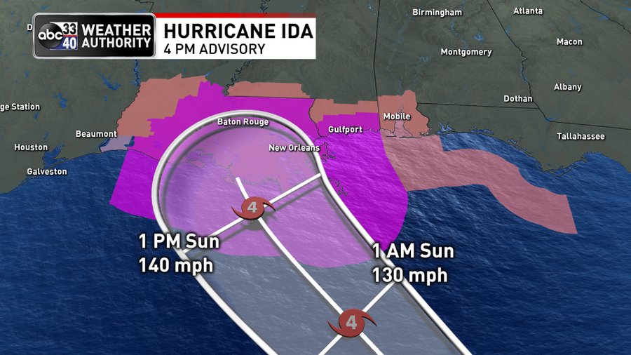 This forecast would make Ida the most powerful hurricane to cross Terrebonne Parish since Hurricane Betsy in 1965 which made landfall with 130 mph winds