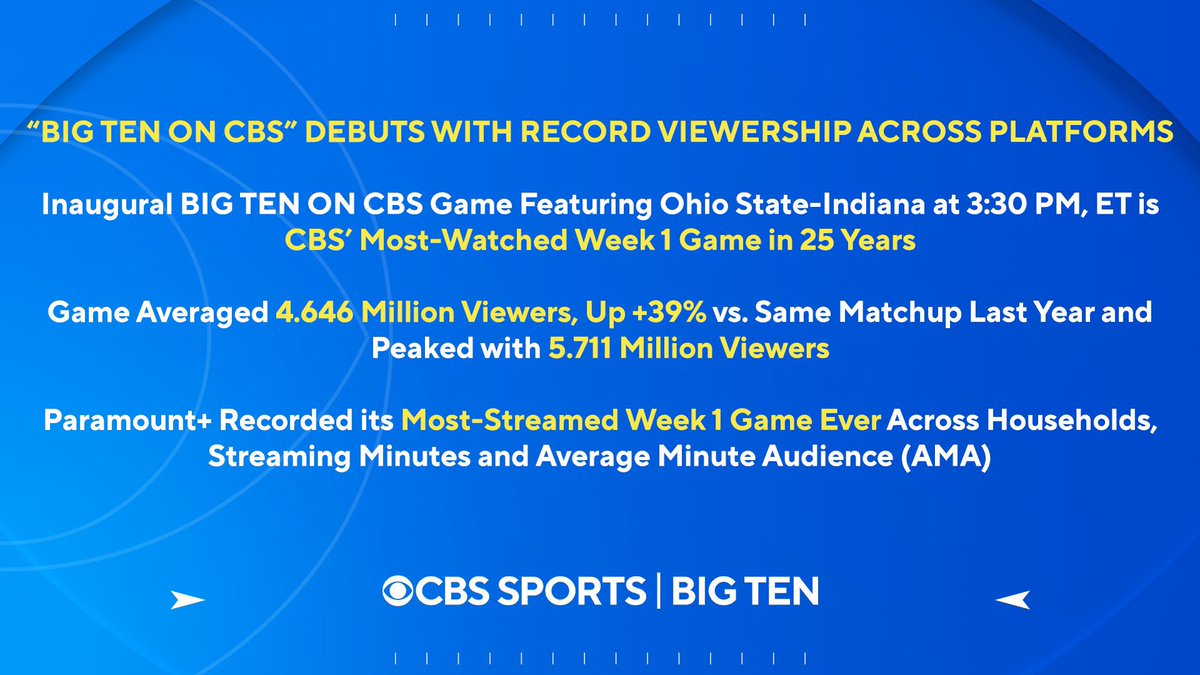 CBS Sports' broadcast of Ohio State/Indiana game was most-watched week 1 game in 25 years