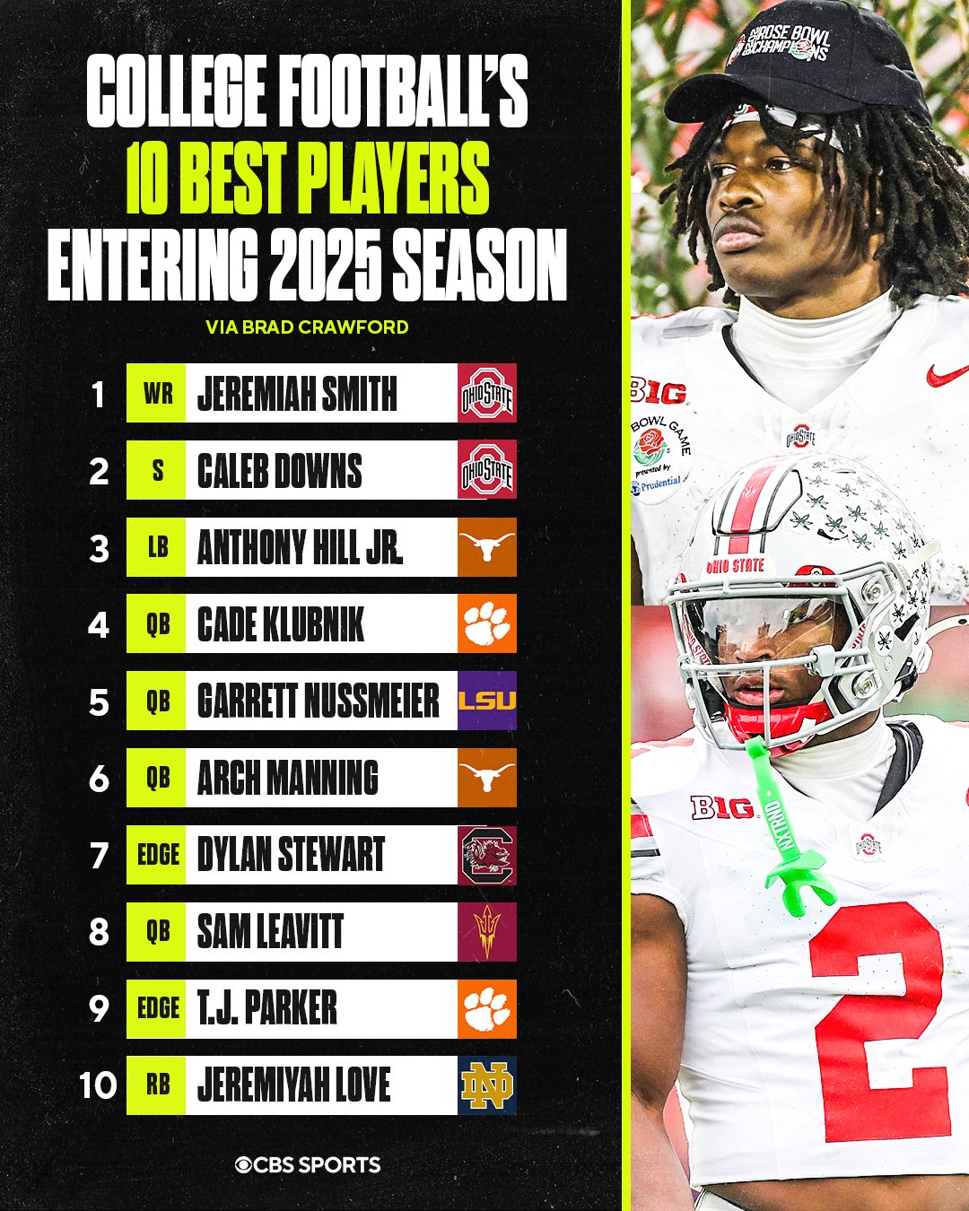 CBS Sports Ranks Top 10 NCAAF Players entering the 2025 Season