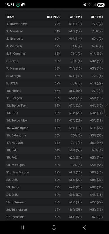2026 COLLEGE FOOTBALL RETURNING PRODUCTION: