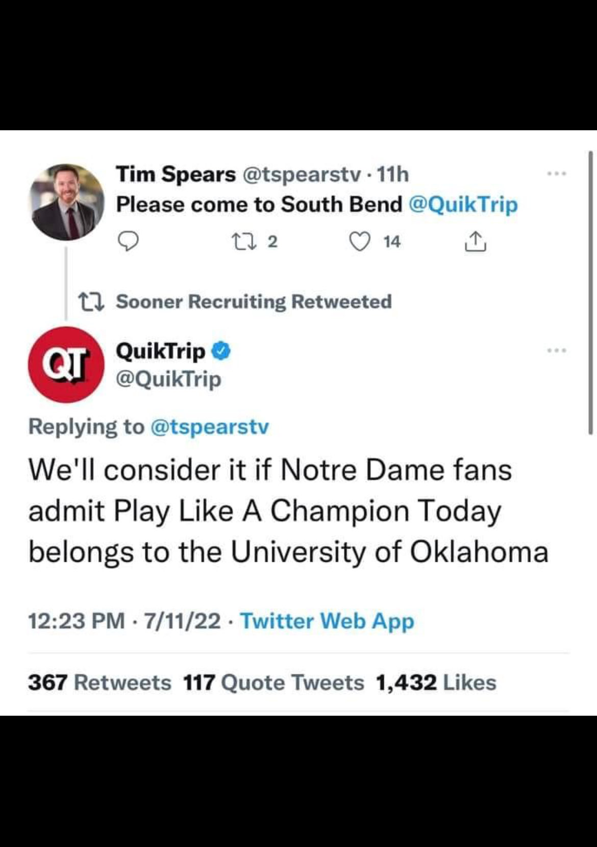 You know your a BB when a state HQ’d gas company dumps on Notre Dame like this