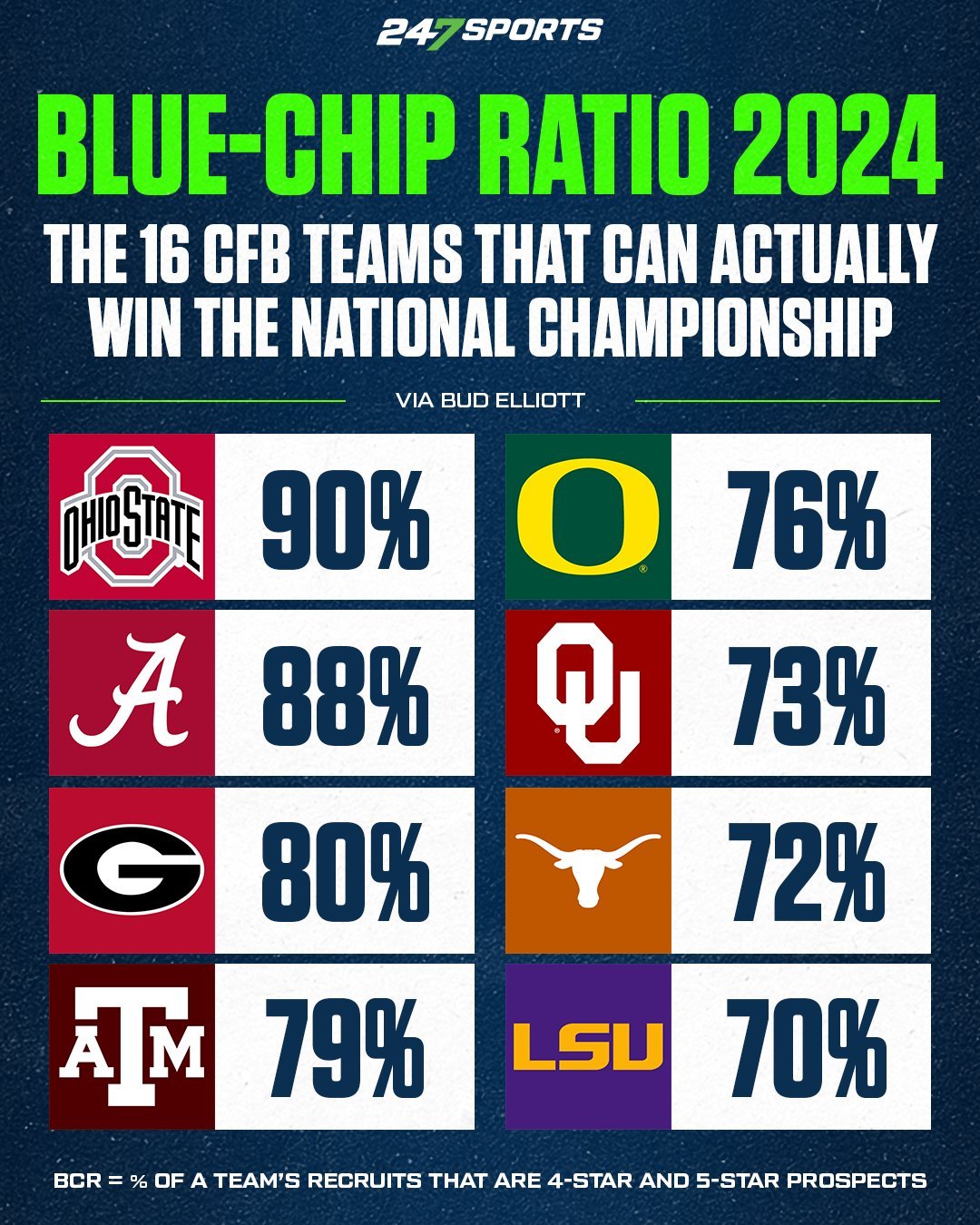 Looking at this chart focus on the Blue Chip improvement to 73%. We announced SEC the last year LiaR was here and all of BV classes was known we were headed here. Many recruits have mentioned this as one reason to pick OU.