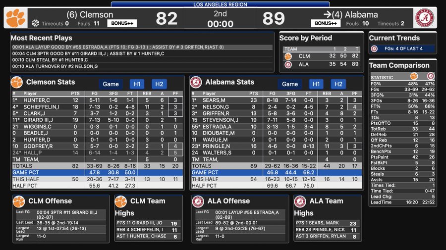 re: Elite 8 Clemson 82 Bama 89 Final