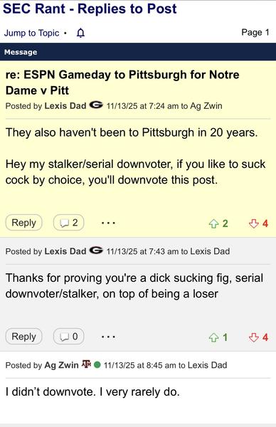 Posted by Lexis Dad G 11/13/25 at 7:43 am to Lexis Dad Thanks for proving you're a dick sucking fig, serial downvoter/stalker, on top of being a loser